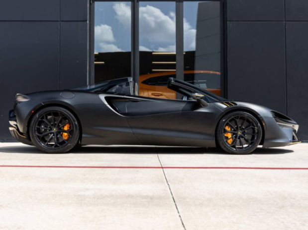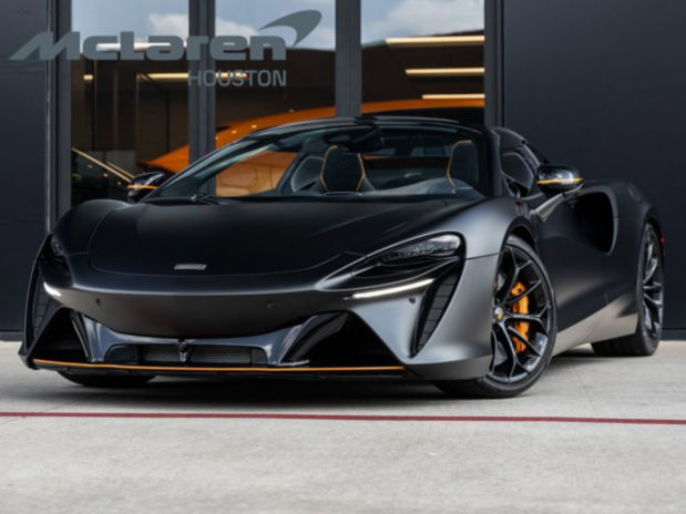 McLaren Houston is delighted to showcase, this Pre-Owned *2025 McLaren Artura Spider*. Dressed in an evocative MSO Bespoke Dove Grey Gloss with a full matte black wrap and with just *1,066 miles* to its name, this vehicle is a testament to the potent combination of high performance and sophistication that McLaren embodies.The Artura Spider stands as a beacon of design and performance, its stealthy matte black exterior wrapping over the original MSO Bespoke Dove Grey Gloss paint for a menacing yet refined look. Adorned with *Stealth Finish 15-Spoke SLV Forged Alloy Wheels*, *McLaren Orange + Silver Logo Calipers*, and *Gloss Black Pack*, it presents an aggressive stance that is unmistakably McLaren. Optional *Sports Exhaust* and *MSO Carbon Fiber Exterior Packs* enhance the dynamic aesthetic with motorsport-inspired precision.Step inside and the *MSO Bespoke Painted Interior Pack* paired with *Black/Orange Contrast Stitching* greets you, exuding an air of cutting-edge luxury and racing flair. The *Bowers & Wilkins Premium Audio System*, *Electrochromic Glass Roof*, and *McLaren Orange Seatbelts* punctuate the interior with a balance of elegance and modern technology. A *12.3-inch Driver Display* and advanced infotainment system further refine the cockpit experience.*Engine and Performance:* At the heart of this mechanical masterpiece is a *3.0-liter twin-turbocharged V6 with E-Motor hybrid system*, delivering a combined *710 horsepower and 531 lb-ft of torque*. Power is managed by an *8-speed dual-clutch Seamless Shift Gearbox (SSG)*, ensuring lightning-fast gear changes and unparalleled driving engagement. The *McLaren Adaptive Damping* system, *Carbon Ceramic Brakes*, and *Vehicle Lift* epitomize the Artura Spiders dual nature as both a track weapon and a refined daily driver.*Key Features:**MSO Gloss Black Pack:* Enhances the exterior with a sleek and aggressive finish.*Bowers & Wilkins Audio System:* World-class sound experience with concert-like clarity.*Electrochromic Glass Roof:* Instantly adjustable for optimal cabin ambiance.*Sports Exhaust:* Unlocks a more visceral soundtrack to match the Arturas performance.*MSO Carbon Fiber Exterior Pack:* Adds lightweight racing-inspired accents.*Technology Pack:* Including advanced driver assistance and convenience features.*Vehicle Lift:* Essential for everyday usability without compromising supercar design.*MSO Bespoke Painted Interior Pack:* Personalized details elevating the cabin to true one-off exclusivity.This 2025 McLaren Artura Spider is far more than just a car, it is the embodiment of McLarens commitment to peak automotive engineering and cutting-edge design. Available at McLaren Houston, this vehicle offers an invitation to experience the thrill of a hybrid supercar that pushes the boundaries of innovation and elegance.McLaren Houston, part of the indiGO Auto Group, offers a wide selection of luxury and exotic cars. Our dealership boasts a Corporate Identity showroom, expert service center, parts and detail departments, and a McLaren boutique. We provide Enclosed Transportation worldwide and offer financing options. Trade-in proposals are always welcome. If you like this vehicle and have questions, simply call, email, or drop by our location at 13901 North Freeway (I-45N) on the north side of Houston. You will meet the friendliest group of car enthusiasts anywhere!